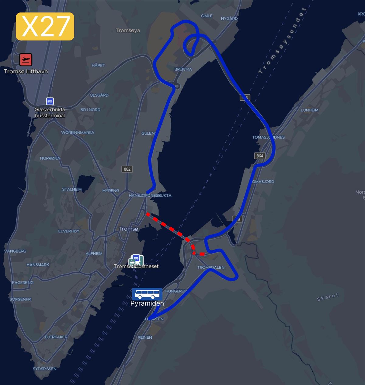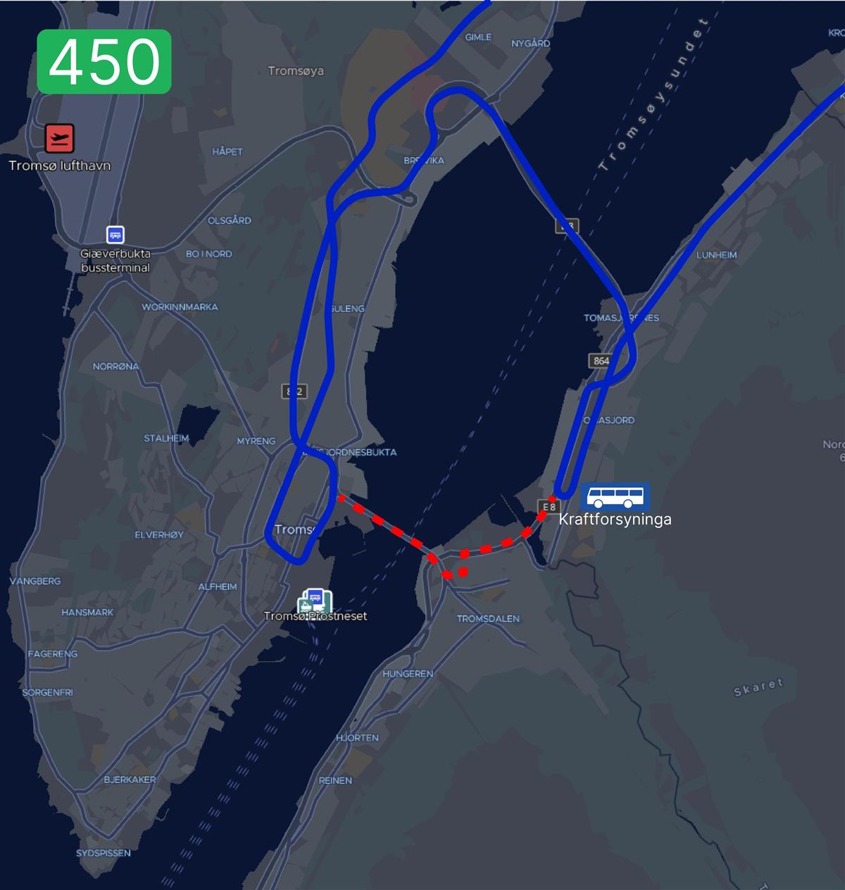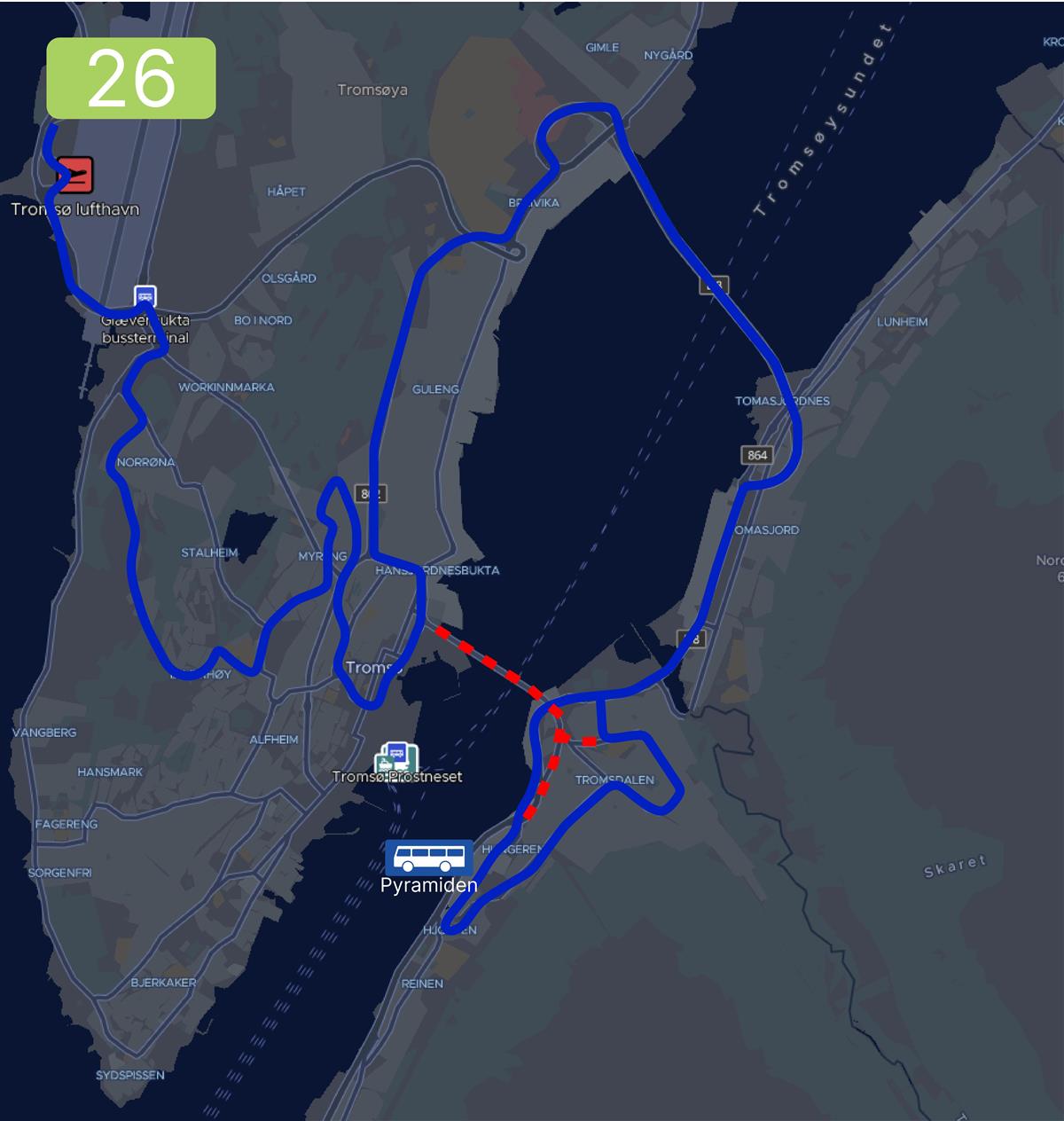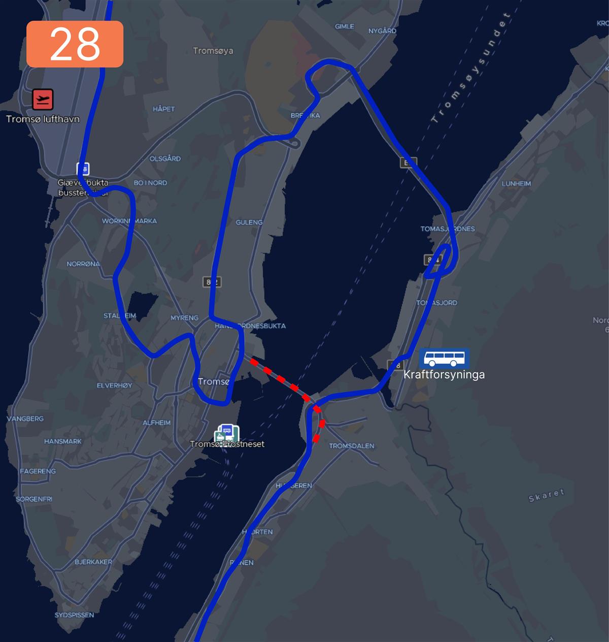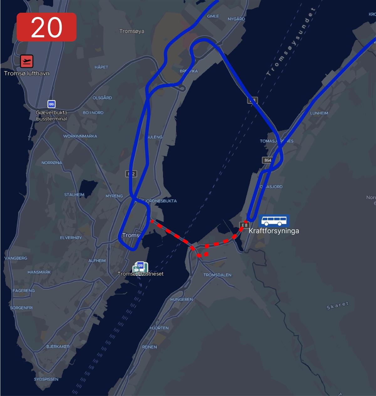 - Avgang 19:20 Tromsø-Gambukt: Ny avgangstid 19:30.